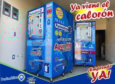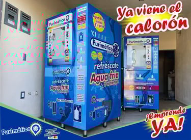Purimático es la empresa Michoacana pionera en la aplicación de sistemas de refrigeración en equipos de purificación tipo vending. Con esto reinventamos el negocio de la venta de agua purificada de autoservicio: incrementamos la rentabilidad para los propietarios de máquinas expendedoras de agua PURIMÁTICO y solventamos la necesidad del usuario final al permitirle acceder al agua fría de bajo costo en cualquier momento y en cualquier lugar.